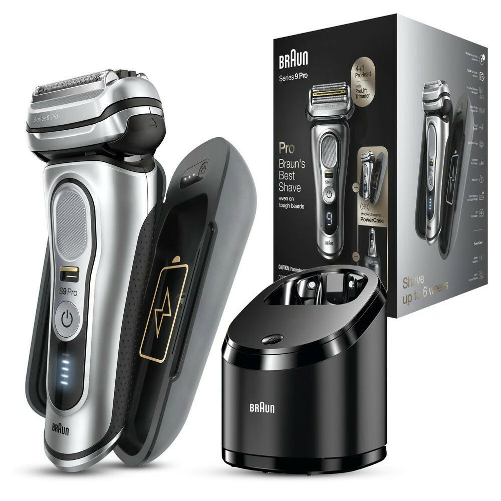 Relevante : Braun, Series, 9, Pro, Premium, Rasierer, Herren, mit, 4+1, Scherkopf, Elektrorasierer, ProLift, Trimmer, PowerCase, 5-in-1, Reinigungsstation, 60 Min, Laufzeit, Made in Germany, 9477cc, silber.