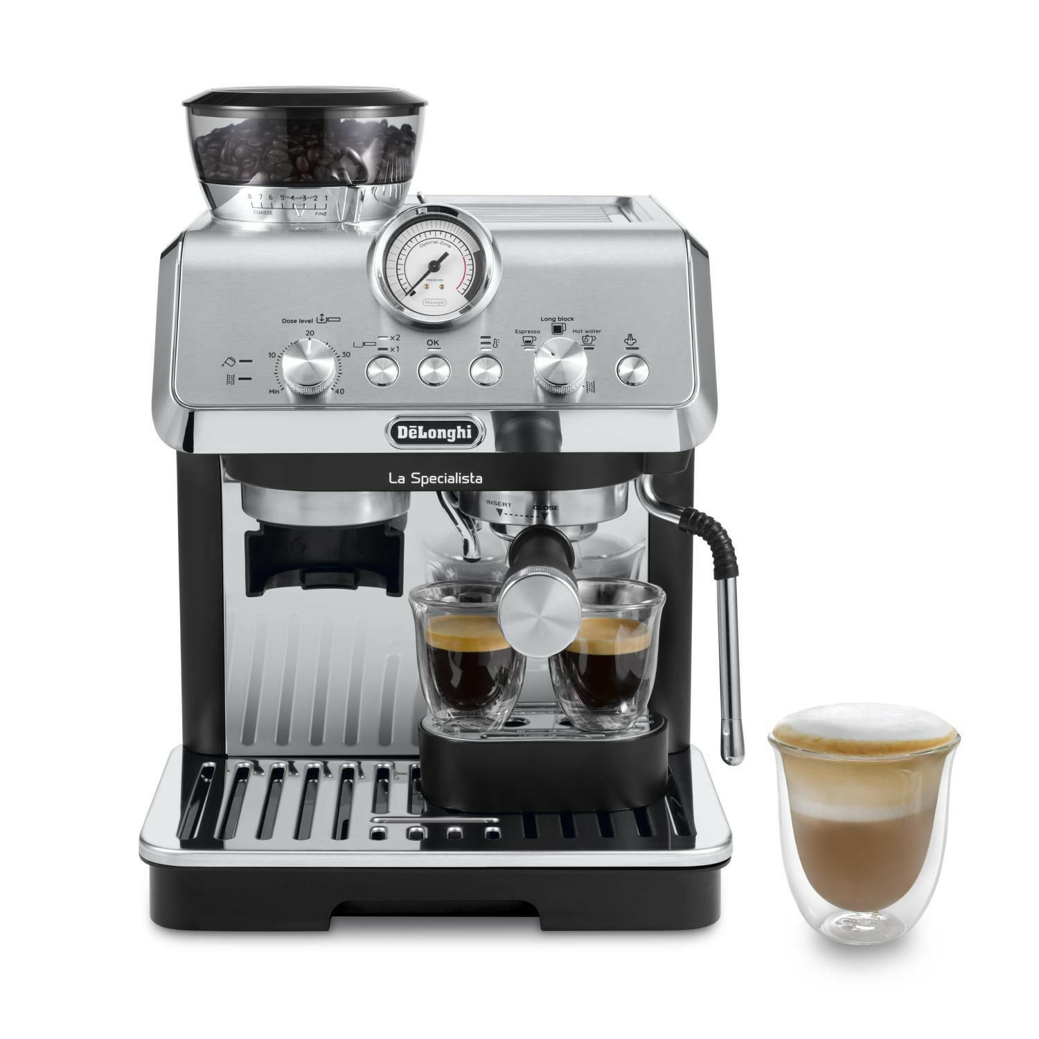 Genießen Sie mit der De'Longhi La Specialista Arte EC9155.MB Siebträger-Espressomaschine den seidenweichen Mikroschaum für Ihre Kaffeegetränke. Dank des innovativen MyLatte Art Systems gelingt es Ihnen mühelos, Kunstwerke aus Milchschaum zu kreieren und Ihren Kaffee optisch zu verfeinern.Professionelles Mahlwerk