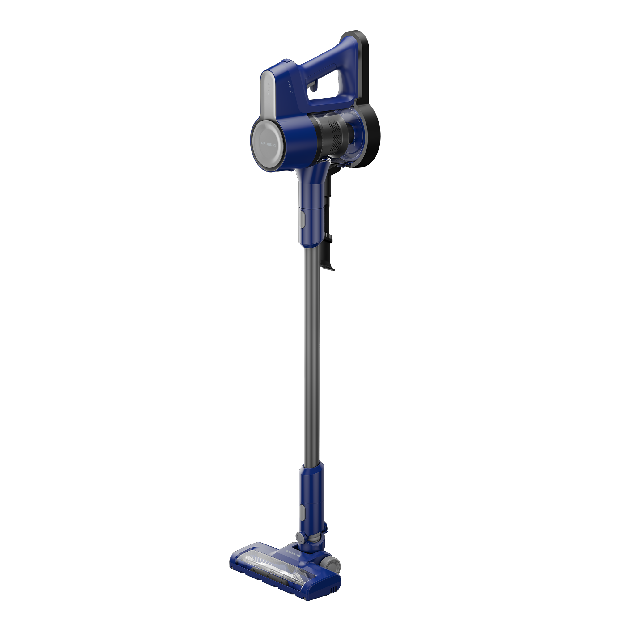 Die eingebauten LED-Leuchten des Grundig VCP 3335 E Akku Staubsaugers sorgen für eine bessere Sichtbarkeit von Staub unter Möbeln wie Kommoden, Schränken oder Sofas. Die großen gummierten Laufräder ermöglichen eine einfache Bewegung auf verschiedenen Oberflächen, während die stylische LED-Ladeanzeige anzeigt, wann das Gerät geladen werden muss.