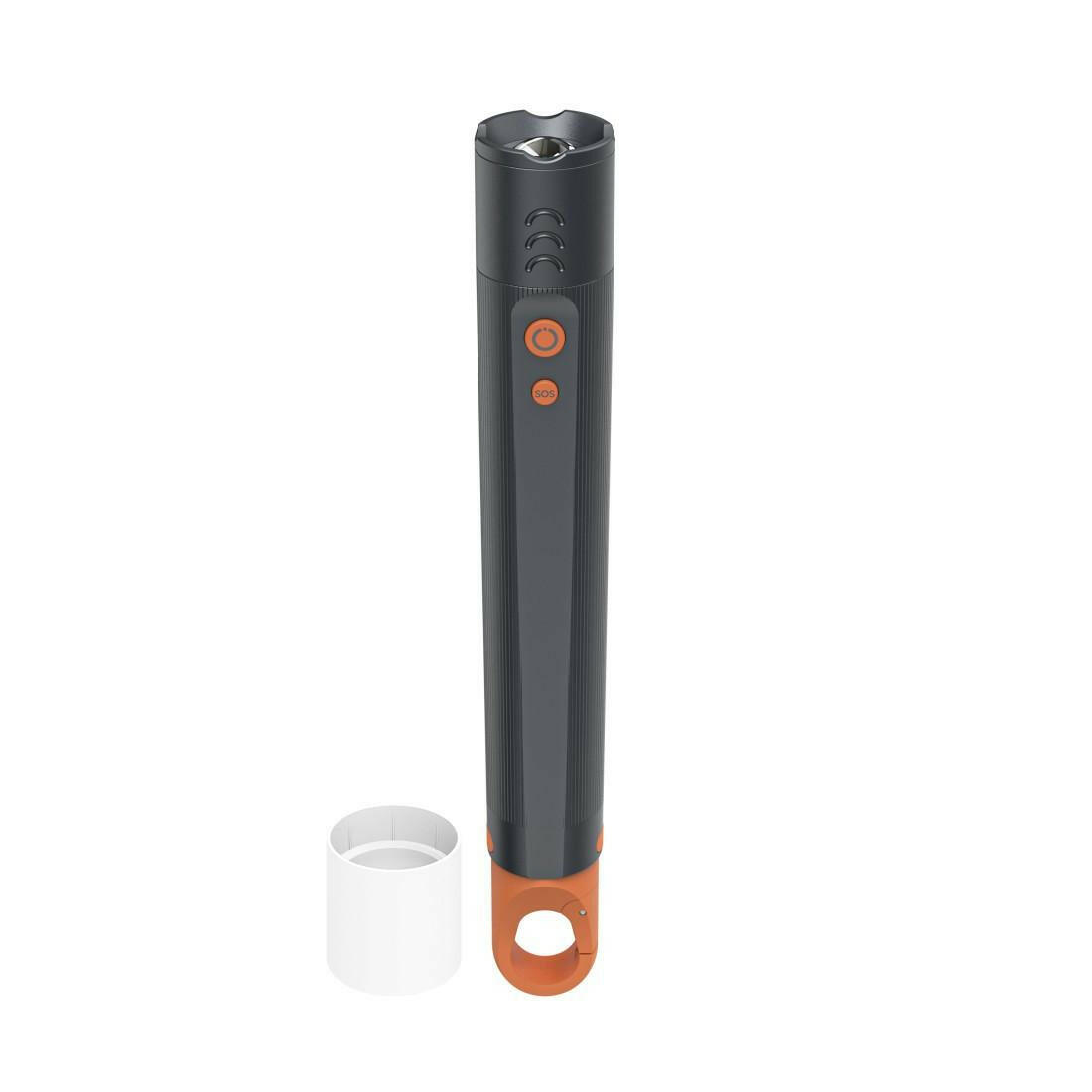 Mit dem aufsteckbaren Diffusor erreichen Sie eine breite Lichtstreuung für eine gleichmäßige Flächenausleuchtung. Das bedeutet, dass Sie nicht nur gezielt Licht spenden können, sondern auch ganze Areale mit gleichmäßigem Licht versorgen. Ein abnehmbarer Haken ermöglicht es Ihnen zudem, die Taschenlampe dort aufzuhängen, wo Sie sie gerade benötigen – so haben Sie immer die Hände frei!