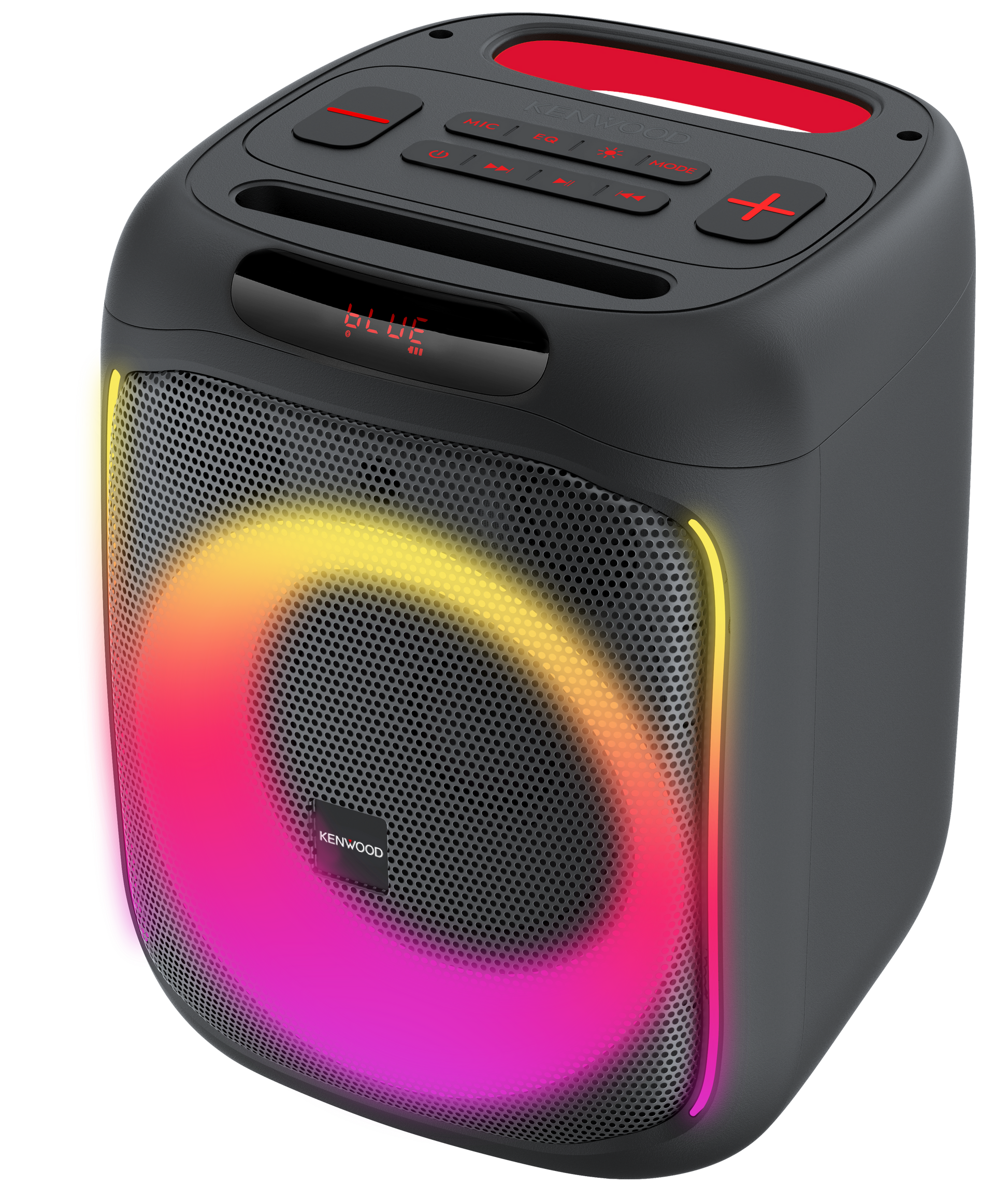 Keywords: Kenwood AS-P200BT, portable party speaker, 50 W, Bluetooth, TWS, USB, microSD, Li-Ion Akku, dynamische Lightshow, Mikrofon, Echo/Gain-Control.