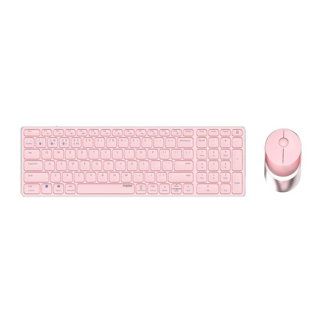 Rapoo 9750M Kabelloses Tastatur-Maus Set - Das elegante Wireless Deskset in Pink