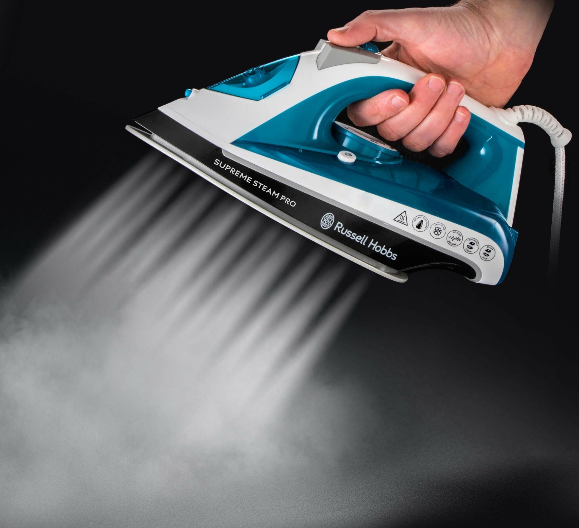 Das Russell Hobbs Supreme Steam Pro Dampfbügeleisen bietet eine Kombination aus Leistung, Benutzerfreundlichkeit und intelligenten Funktionen für ein müheloses Bügelerlebnis. Mit seinem praktischen Design und seinen herausragenden Leistungsmerkmalen ist es die perfekte Wahl für alle, die Wert auf perfekt geglättete Kleidung legen.