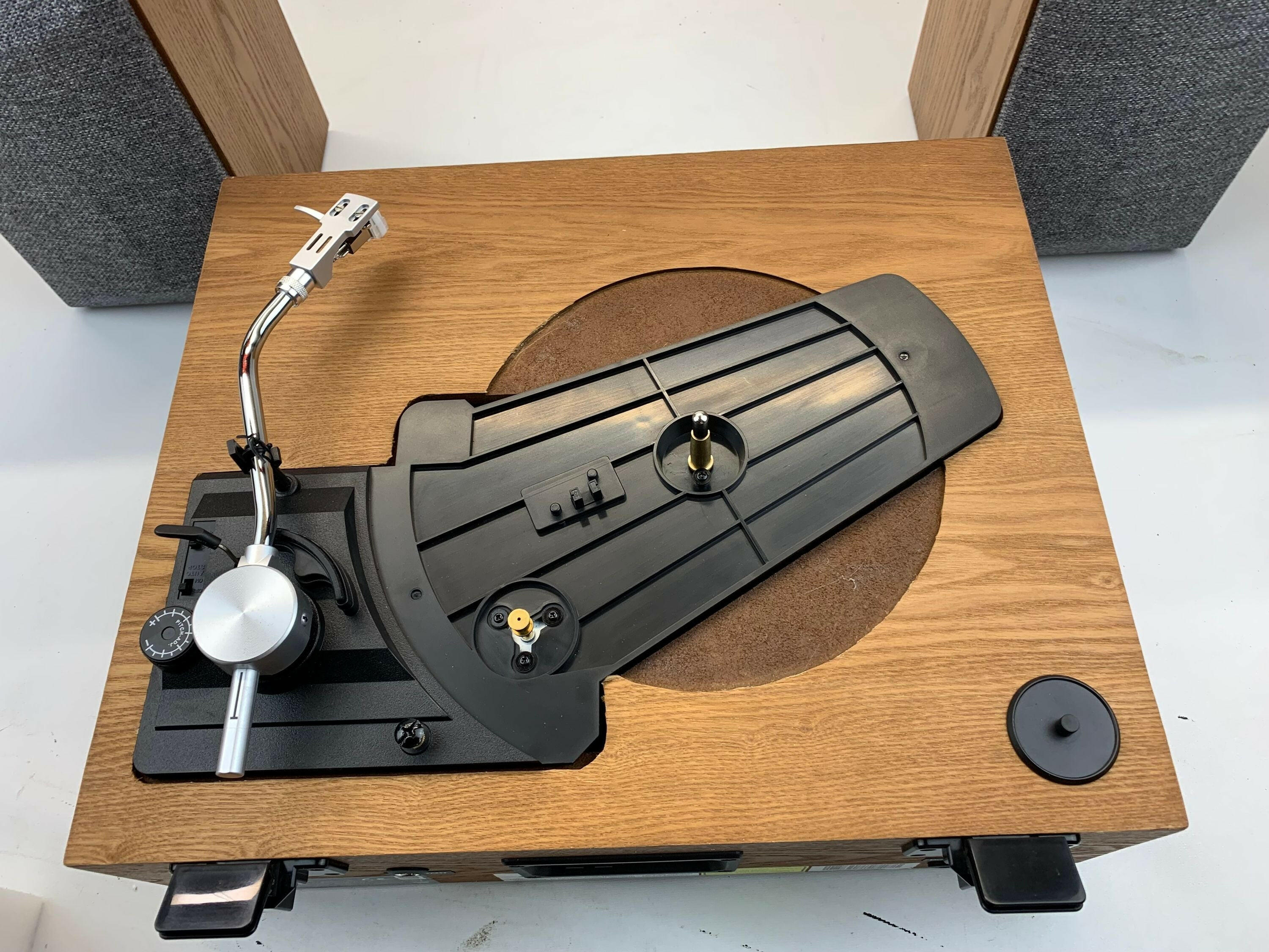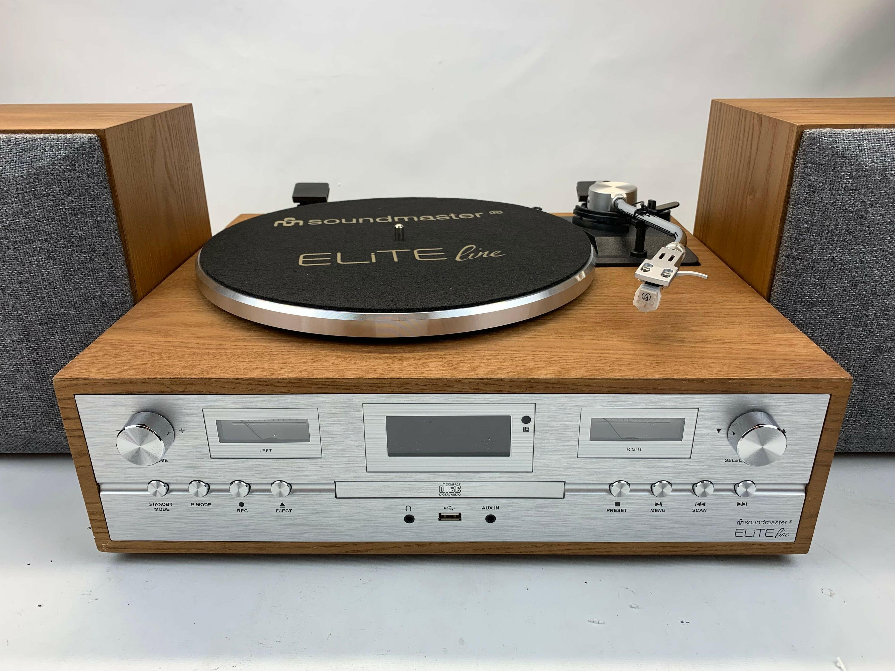 Die SOUNDMASTER Stereoanlage PL895 verbindet klassisches Design mit zeitgemäßer Funktionalität und ist ideal für Musikliebhaber jeden Alters. Mit ihrem halbautomatischen Plattenspieler, der sowohl mit 33 als auch mit 45 Umdrehungen pro Minute betrieben werden kann, sorgt sie für ein authentisches Vinyl-Erlebnis. Das Magnettonabnehmersystem und der Aluminium Plattenteller garantieren eine präzise Wiedergabe Ihrer Lieblingsplatten. Vielseitige Wiedergabemöglichkeiten und kabellose Verbindung Neben dem Plattenspieler verfügt die PL895 über ein DAB+/UKW-RDS Radio mit je 20 Festsenderspeichern, einen CD-Player für CD, CD-R/RW und CD-MP3, sowie USB-MP3 Wiedergabemöglichkeiten. Dank der Bluetooth® Empfangsfunktion können Sie außerdem kabellos Musik von Ihrem Smartphone oder Tablet streamen. Der 3,5 mm Aux In Anschluss, der RCA (Cinch) Audio Ausgang und der 3,5 mm Kopfhöreranschluss bieten weitere Anschlussmöglichkeiten für externe Geräte.