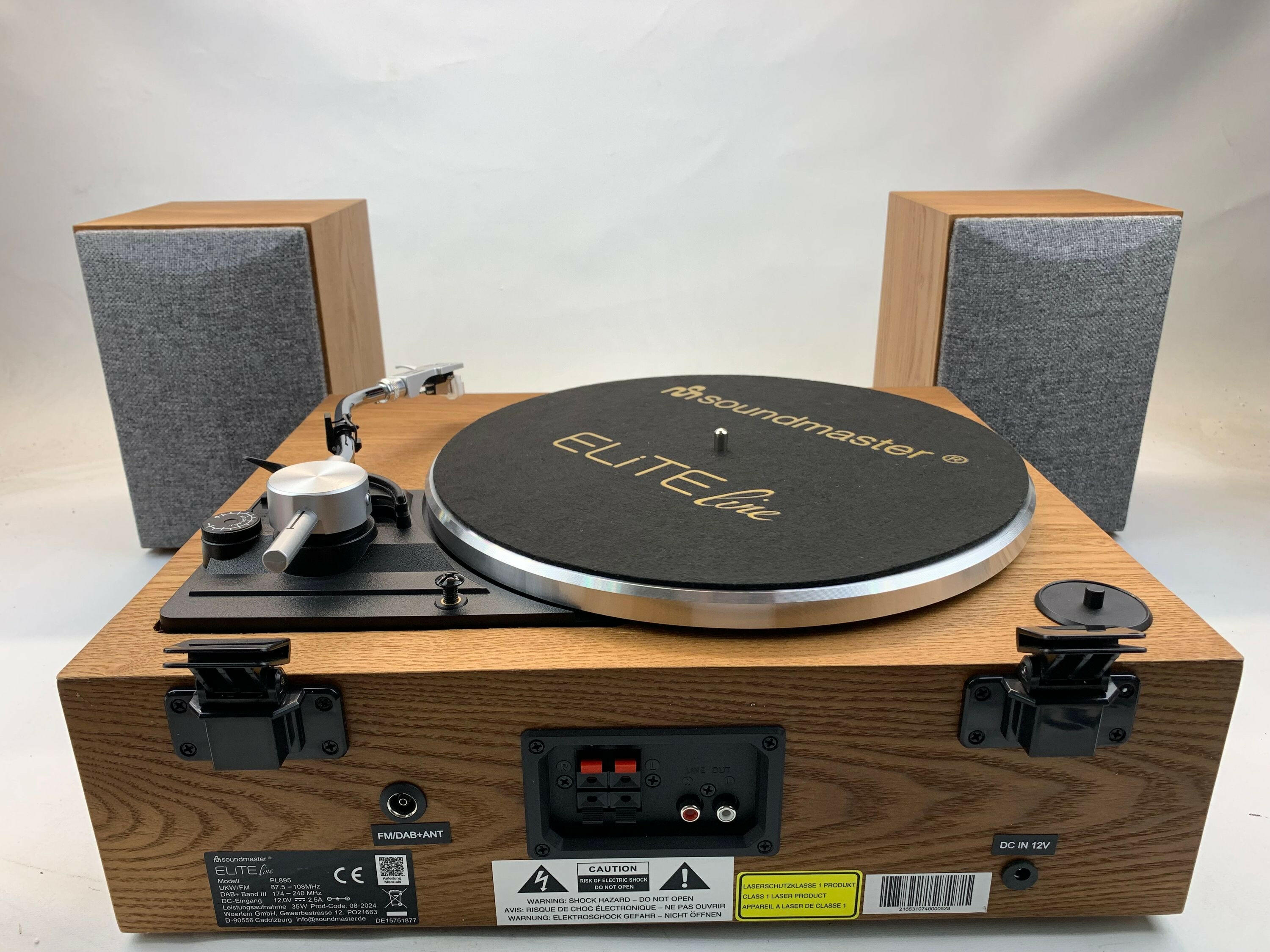 Die SOUNDMASTER PL895 verfügt über eine Hörbuchfunktion und die Möglichkeit, Ihre Lieblingsmusik auf einem USB-Stick aufzunehmen. Der Equalizer bietet vorprogrammierte Klangeinstellungen und die Pegelanzeige sorgt stets für die optimale Lautstärke. Die 2-Wege Bass-Reflex Lautsprecher mit einer Ausgangsleistung von 2 x 12,5 W RMS sorgen für einen satten Klang. Perfekte Unterhaltung für Zuhause Mit der mitgelieferten Fernbedienung können Sie die Anlage bequem steuern, während der 75-Ohm Antennenanschluss eine zuverlässige Signalübertragung gewährleistet. Die SOUNDMASTER Stereoanlage PL895 wird mit Netzbetrieb (230 V ~ 50Hz) betrieben und ist die ideale Ergänzung für Ihr Zuhause. Nutzen Sie diese Stereoanlage, um Ihre Lieblingsplatten und Musik in bester Klangqualität zu genießen – egal ob alleine oder bei geselligen Zusammenkünften. Sicherheitshinweise: - Den Plattenspieler stets gemäß den Anweisungen des Herstellers bedienen. - Elektrische Anlage nur in trockenen Räumen betreiben und vor Feuchtigkeit schützen. - Bei Fragen zur Bedienung oder Installation die beiliegende Anleitung konsultieren.