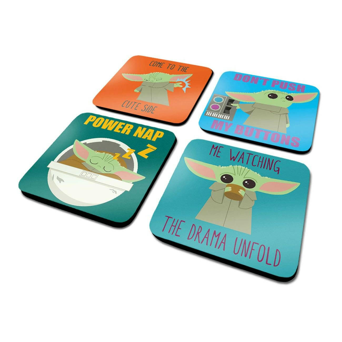 - Star Wars The Mandalorian Design: Jeder Untersetzer präsentiert Baby Yoda in charmanten Variationen.